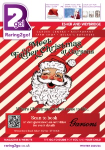 Raring2go! What to Do and Where to Go 21 All December A Magical Christmas at Godstone Farm! BOOK HERE! Jingle all the way to Godstone Farm for a festive farmyard day out! Celebrate the season with a magical visit to Father Christmas! Share Christmas wishes in his cozy grotto, choose a gift from Father Christmas’ Toy Shop, and enjoy a whimsical walkthrough with festive fun. Enjoy entry to our amazing Christmas Show, an interactive performance adding extra sparkle to your visit! So much included... A visit to our Christmas Grotto! A toy from Father Christmas’ Toy Shop! Entry to our interactive Christmas Show! Enjoy our Cookie Decorating Experience! PLUS all the usual fun on the farm! Sat 22 Nov – 24 Dec* Book online Magical Grotto & Breakfast with Santa Two experiences for you to enjoy *Selected dates. Visit squiresgardencentres.co.uk at Squire’s Shepperton TW2 5PA BE PART OF THE PARENTS’ GO-TO GUIDE! Now taking early bird bookings for the Spring and Summer 2026 editions. Book in to the magazine today, and we can get your details online straight away! esherandweybridge@raring2go.co.uk